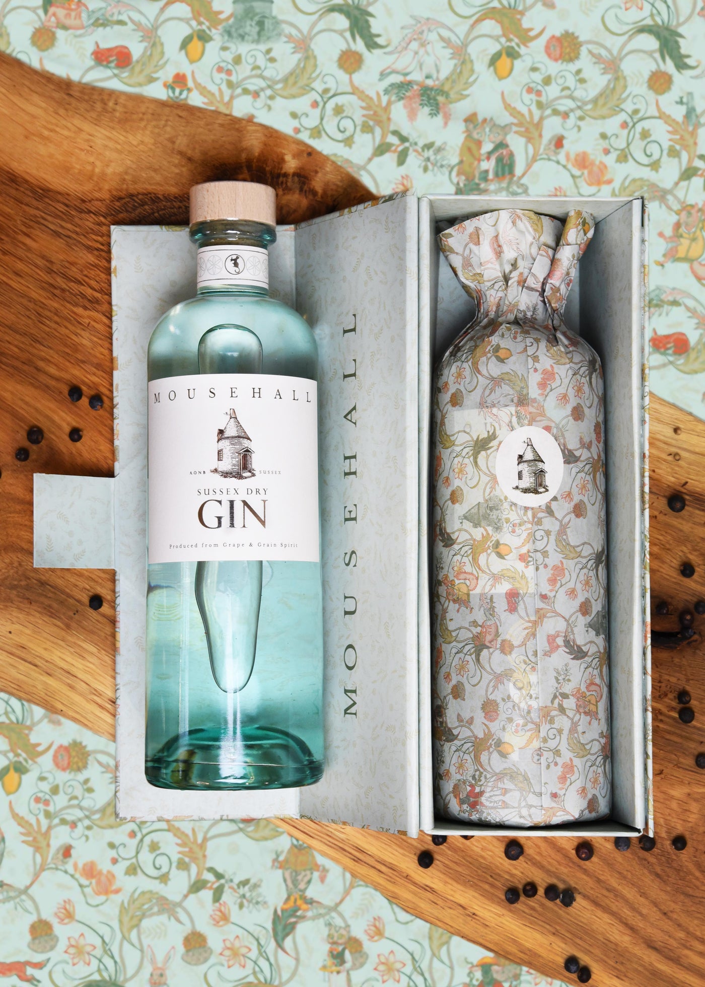 Our Gin in a Box includes a bottle of Mousehall Sussex Dry Gin, wrapped in tissue paper, sealed with an Oast sticker and placed into our 100% sustainable and reusable gift boxes.